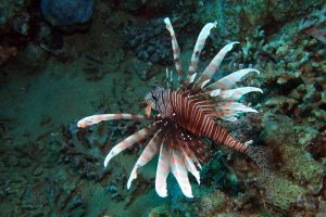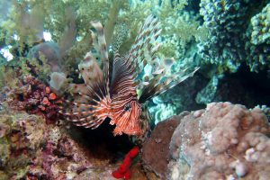 Schorpioen en steenvissen Gewone koraalduivel Pterois volitans Aqaba JordaniëGewone koraalduivel Pterois volitans Aqaba Jordanië